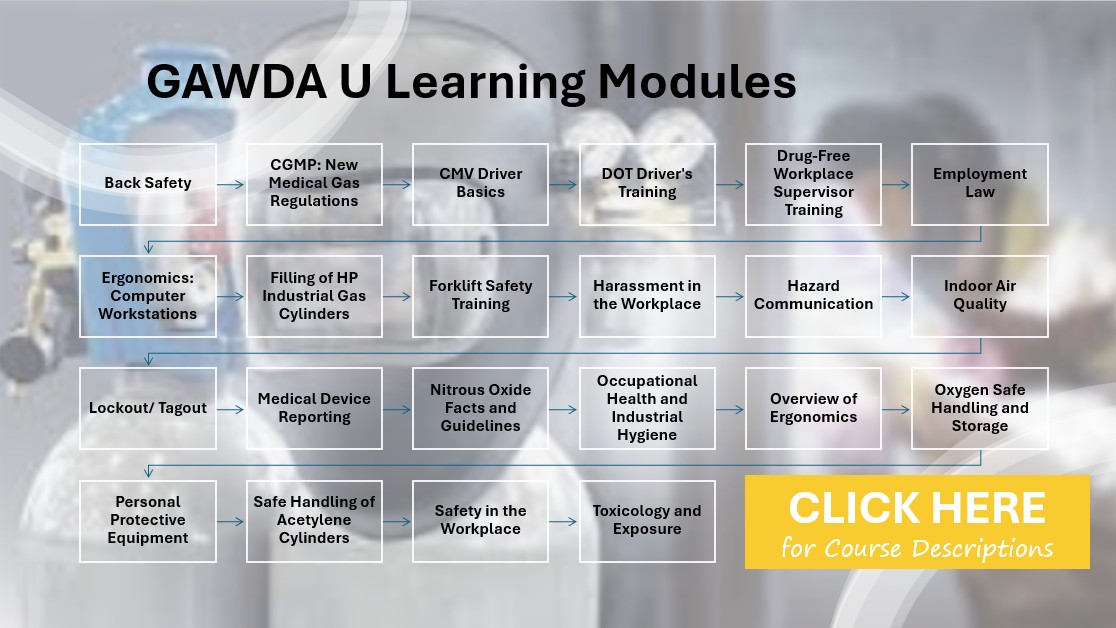The GAWDA mission is to promote the safe operation and economic vitality of distributors of industrial gases and related welding equipment and supplies.